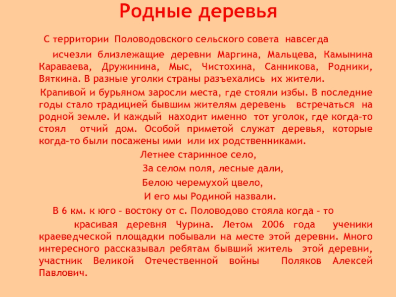 Слайд 13 В любой деревне, в любом селе почти