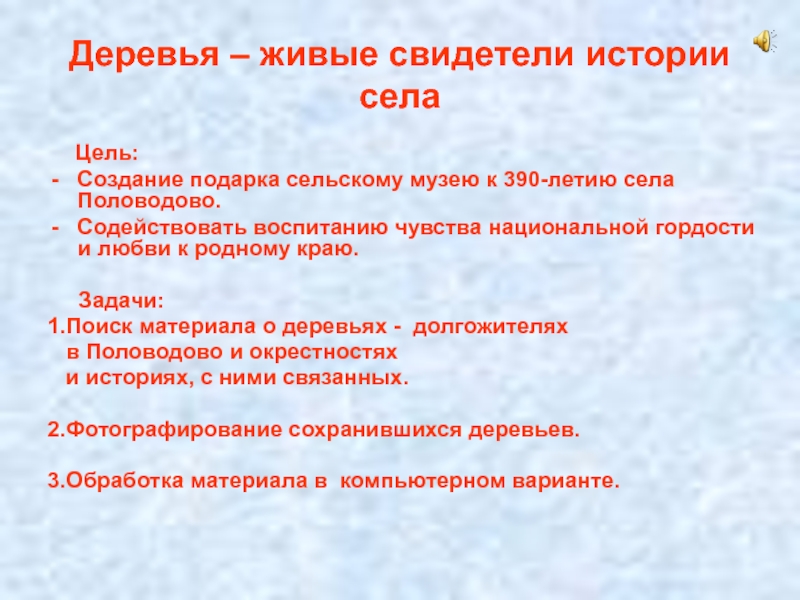 Слайд 2Деревья – живые свидетели истории села