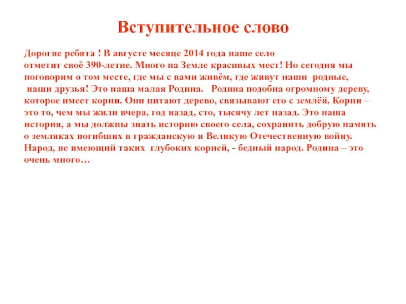 наши друзья! Это наша малая Родина. Родина подобна огромному дереву,