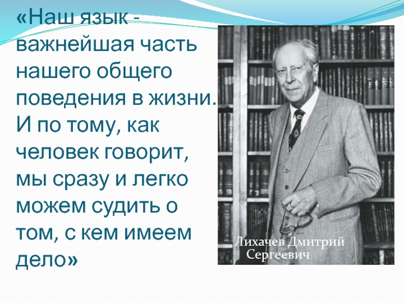 Слайд 23«Наш язык - важнейшая часть нашего общего поведения в жизни.