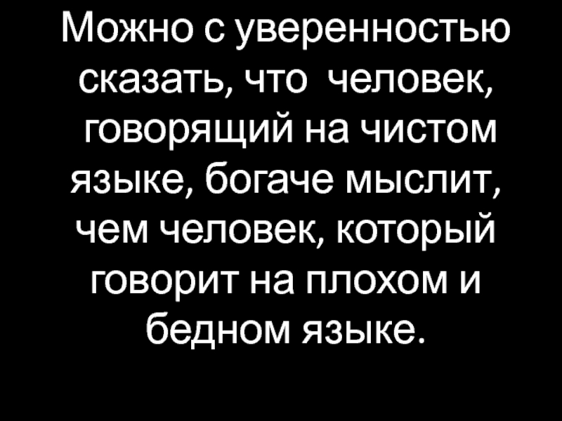 богаче мыслит, чем человек, который говорит на плохом и бедном