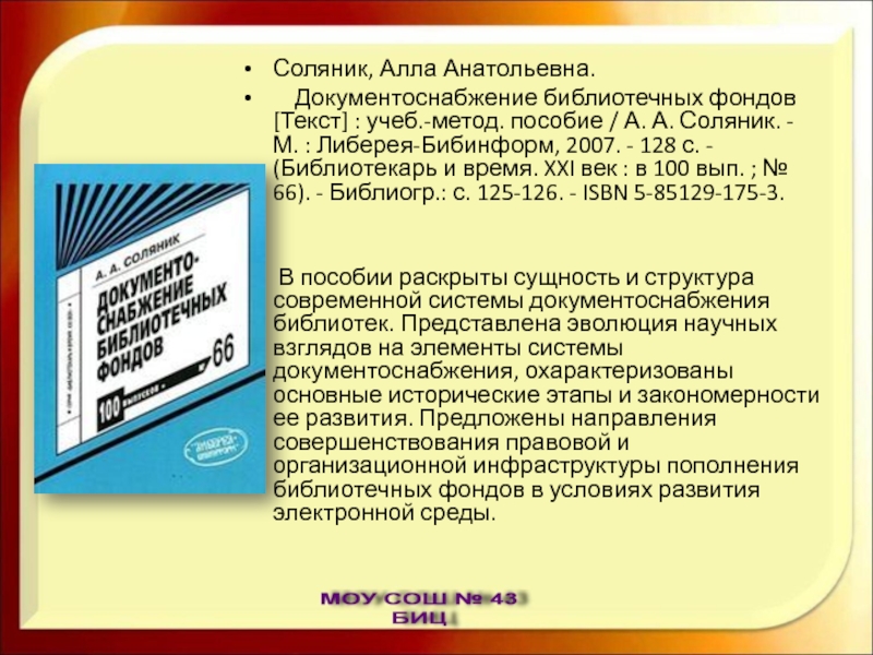 учеб.-метод. пособие / А. А. Соляник. - М. : Либерея-Бибинформ,