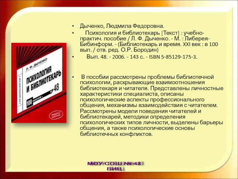 Слайд 16Справочник библиотекаря [Текст] : научное издание / науч. ред. А.Н.