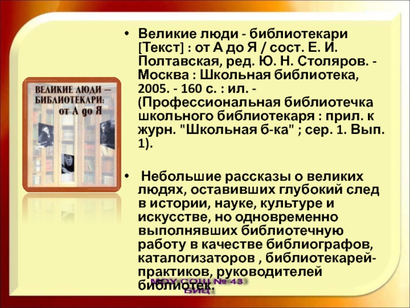 Слайд 6Великие люди - библиотекари [Текст] : от А до Я