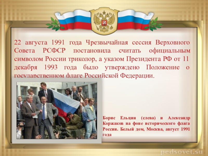 Слайд 922 августа 1991 года Чрезвычайная сессия Верховного Совета РСФСР постановила