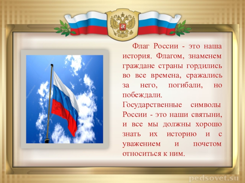 уважения истории великой страны. Трехцветный стяг неразрывно связан со становлением