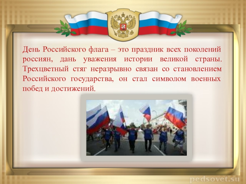 Слайд 2День Российского флага – это праздник всех поколений россиян, дань