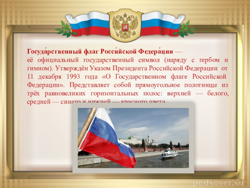 Слайд 5Госуда́рственный флаг Росси́йской Федера́ции —