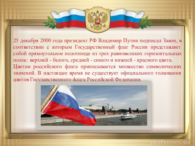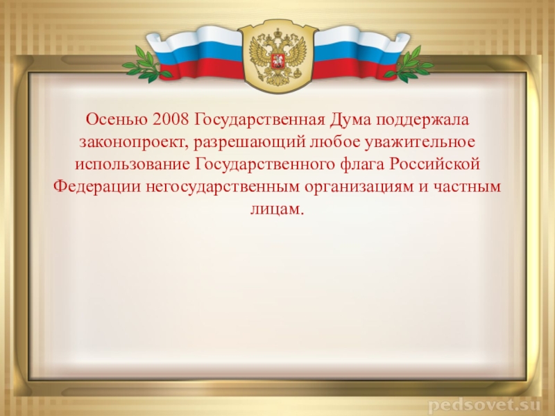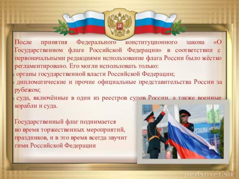 Слайд 13После принятия Федерального конституционного закона «О Государственном флаге Российской Федерации»
