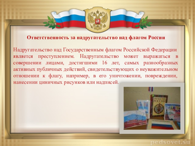 Федерации является преступлением. Надругательство может выражаться в совершении лицами, достигшими
