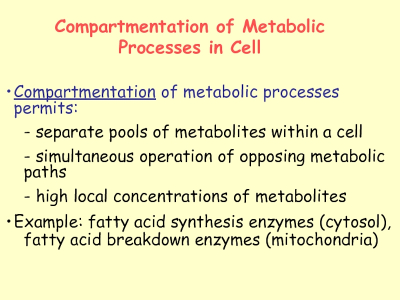 Compartmentation of Metabolic Processes in Cell