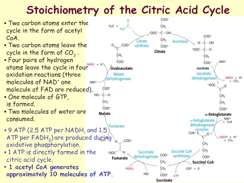 Most fuel molecules enter the cycle as acetyl coenzyme A.