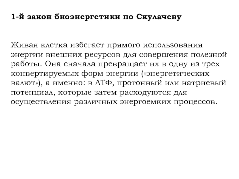 Слайд 131-й закон биоэнергетики по Скулачеву