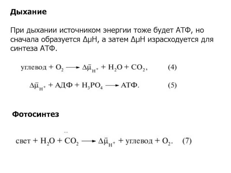 ΔμΗ, а затем ΔμΗ израсходуется для синтеза АТФ.