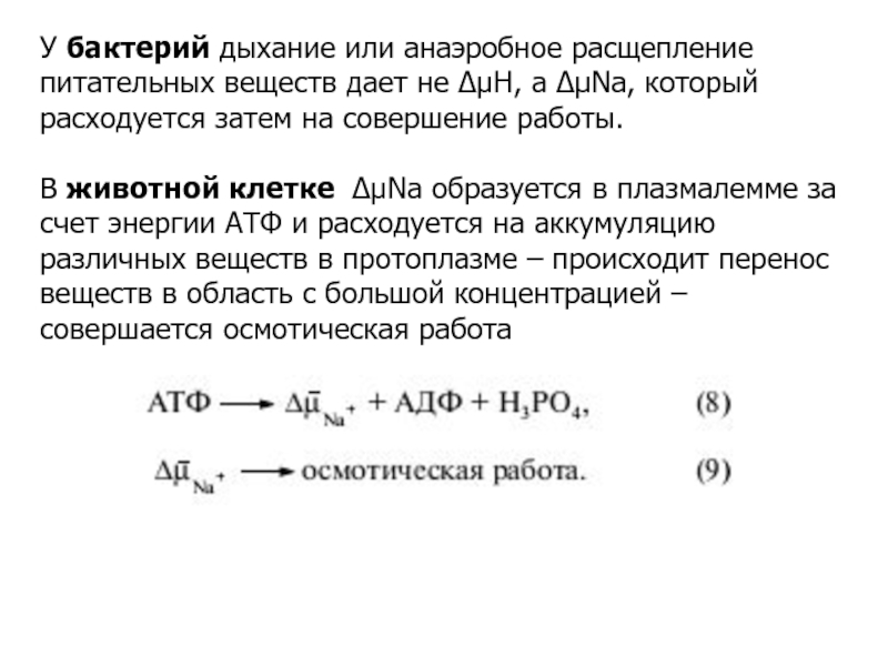 Слайд 18У морских бактерий осмотическая работа поддерживается за счет ΔμNa, а