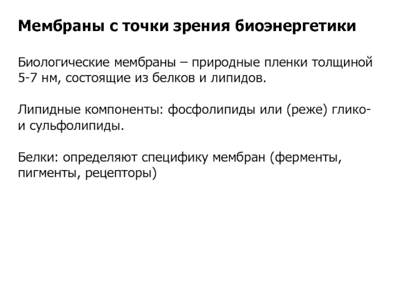 Слайд 2Мембраны с точки зрения биоэнергетики