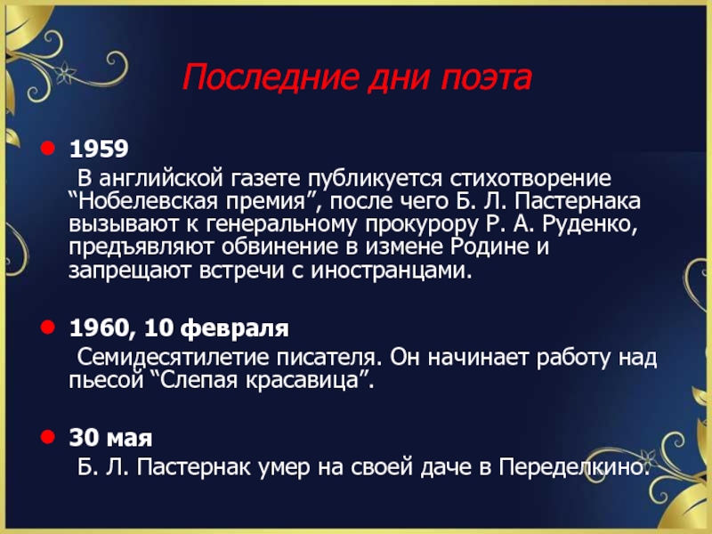 Слайд 15Последние дни поэта