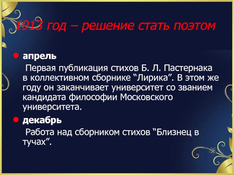 Слайд 41913 год – решение стать поэтом