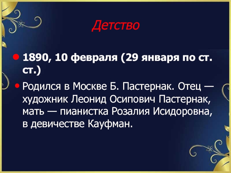 Слайд 1Биография Пастернака Бориса Леонидовича