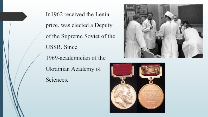 Слайд 7In1962 received the Lenin prize, was elected a Deputy of