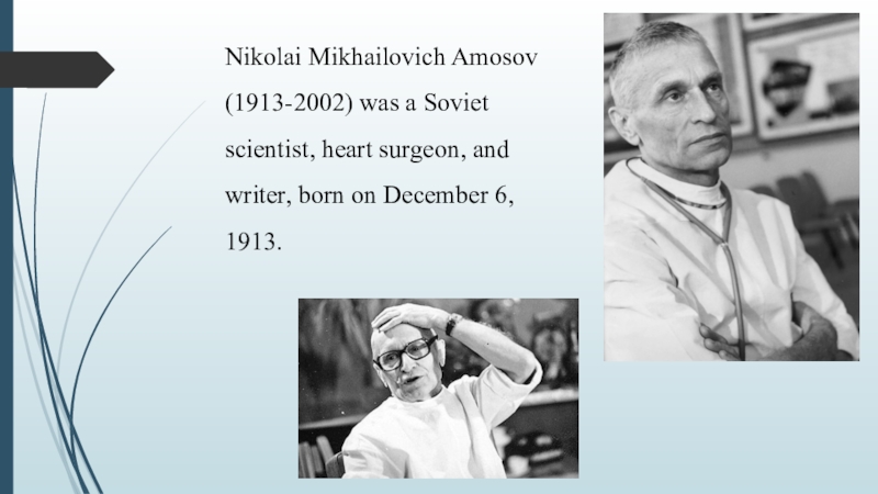 Слайд 2Nikolai Mikhailovich Amosov (1913-2002) was a Soviet scientist, heart surgeon,