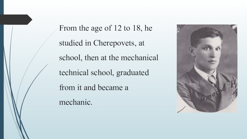 From the age of 12 to 18, he studied in Cherepovets, at school, then at the mechanical