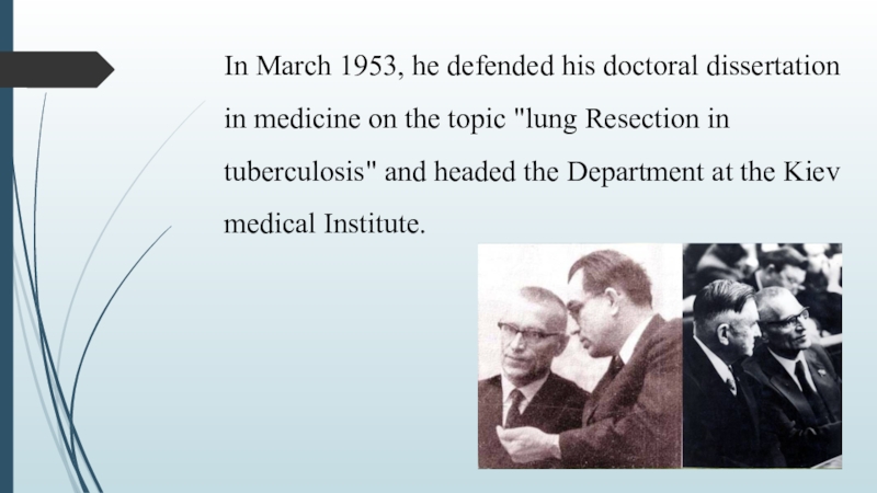 Слайд 6In March 1953, he defended his doctoral dissertation in medicine