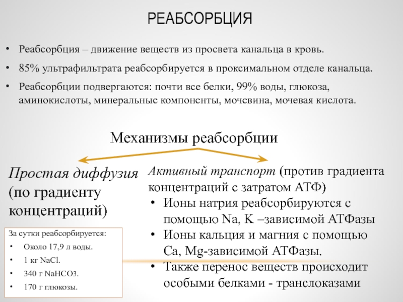 Ионы натрия реабсорбируются с помощью Na, K –зависимой АТФазы