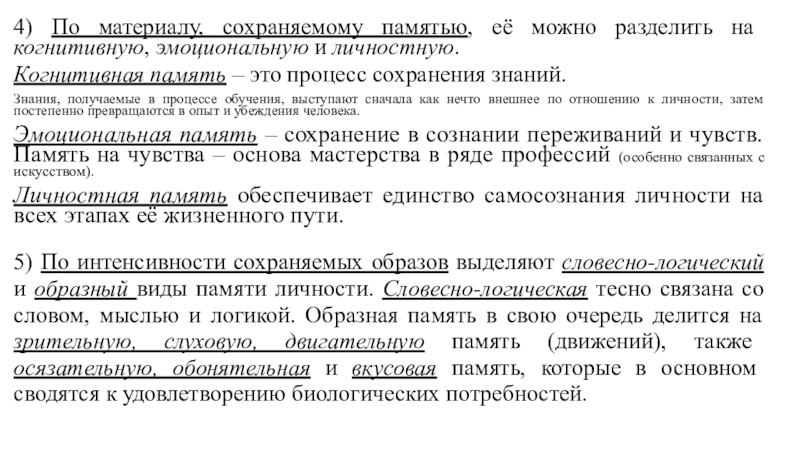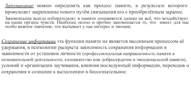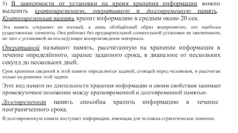 2) точность и избирательность памяти (внимание выступает как фактор, способствующий сохранению нужной информации в кратковременной и оперативной памяти);