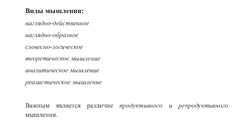 сенсорное (направлено на восприятие), интеллектуальное (направлено на мышление и работу
