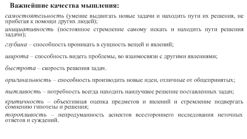 3) направленность и продуктивность мышления (внимание выступает как обязательный фактор правильного понимания и решения задачи).