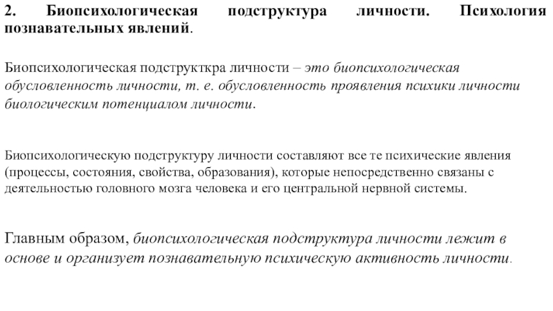 2. Биопсихологическая подструктура личности. Психология познавательных