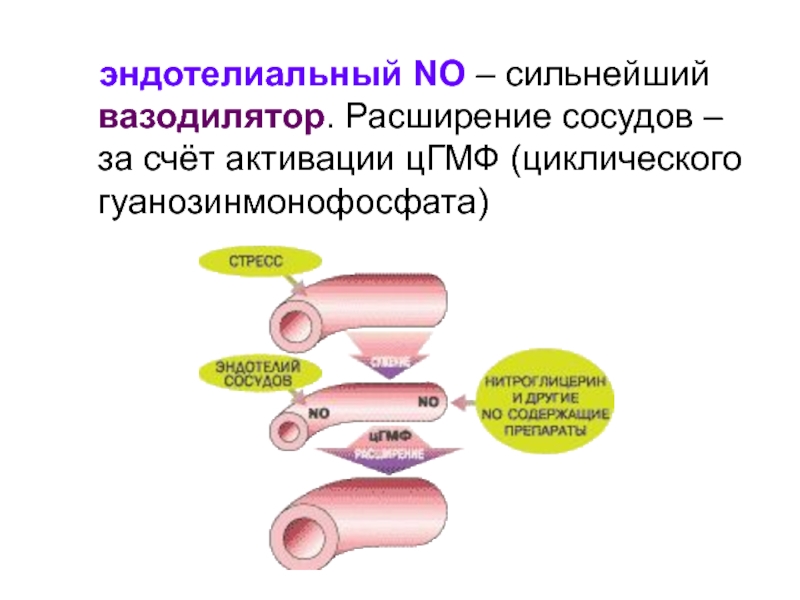 Слайд 46 эндотелиальный NO – сильнейший вазодилятор. Расширение сосудов –