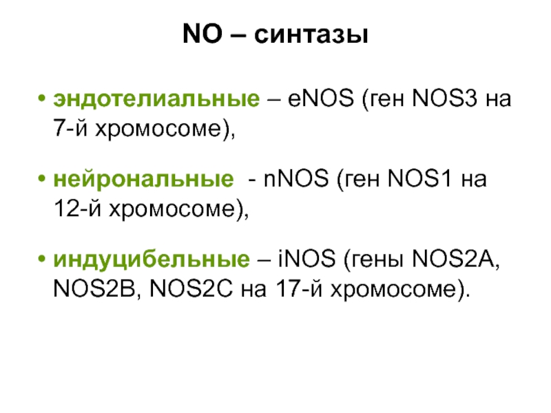 эндотелиальные – eNOS (ген NOS3 на 7-й хромосоме),
