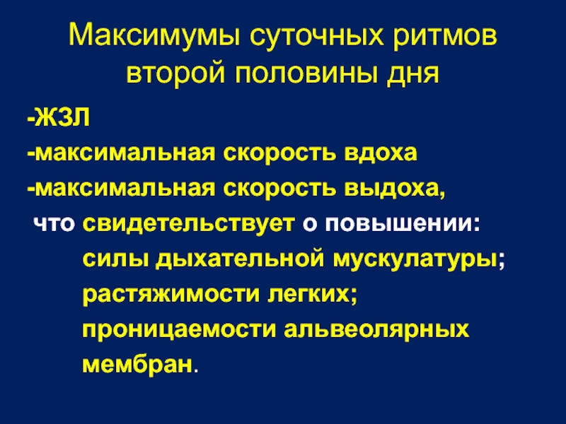Слайд 11Максимумы суточных ритмов второй половины дня