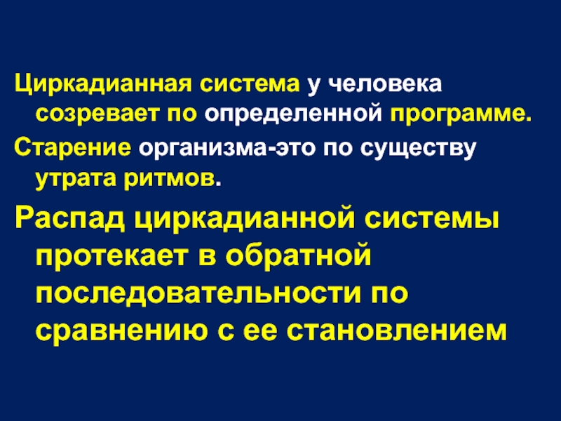 Слайд 12Циркадианная система у человека созревает по определенной программе.
