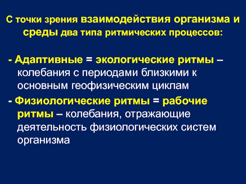С точки зрения взаимодействия организма и среды два типа ритмических