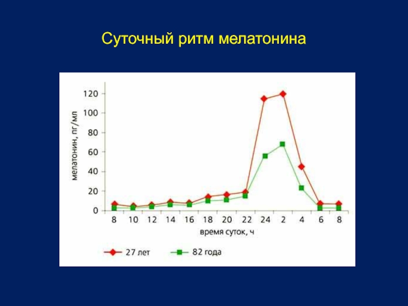 Секреция мелатонина подчиняется циркадианной ритмике и зависит от