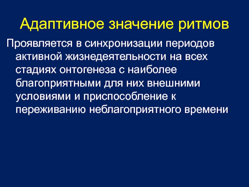 - Адаптивные = экологические ритмы – колебания с периодами близкими