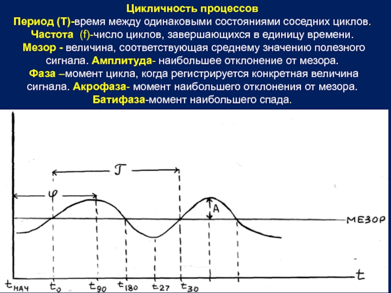 Фаза –момент цикла, когда регистрируется конкретная величина сигнала. Акрофаза- момент наибольшего отклонения от мезора.