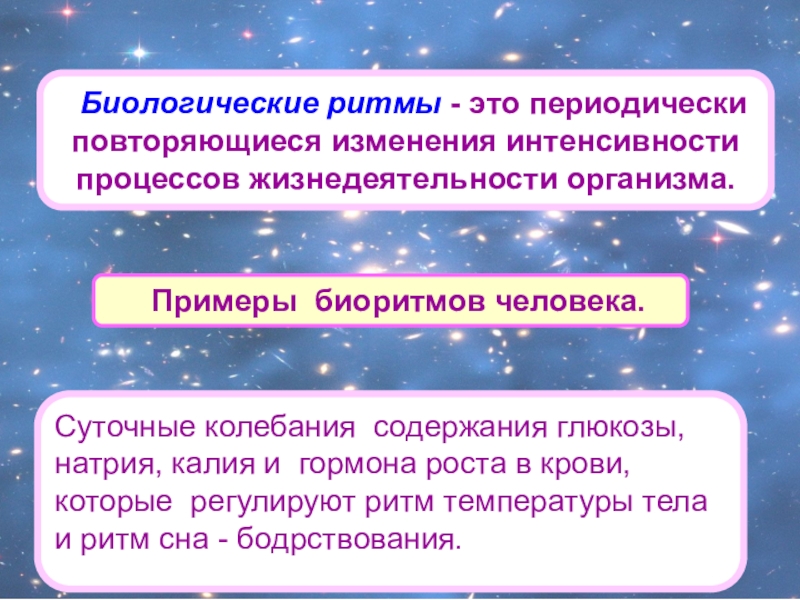 в крови, которые регулируют ритм температуры тела и ритм сна - бодрствования.Примеры биоритмов человека.