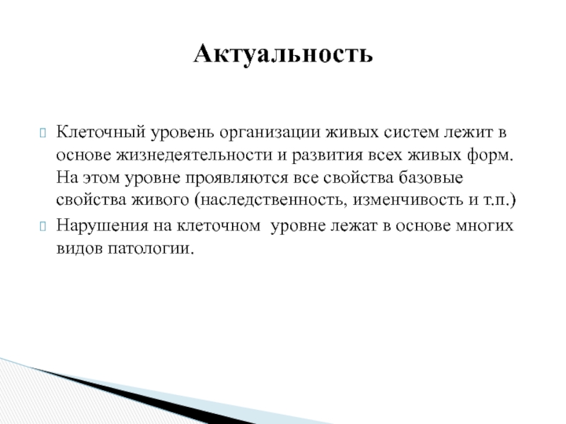 базовые свойства живого (наследственность, изменчивость и т.п.)Нарушения на клеточном уровне лежат в основе многих видов патологии.
