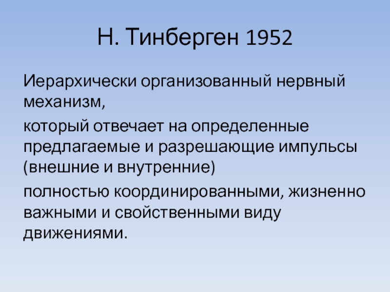 4. Любая из ряда неприобретённых, наследственных тенденций, которые, как предполагается, выполняют функции мотивационных сил сложных человеческих моделей поведения.