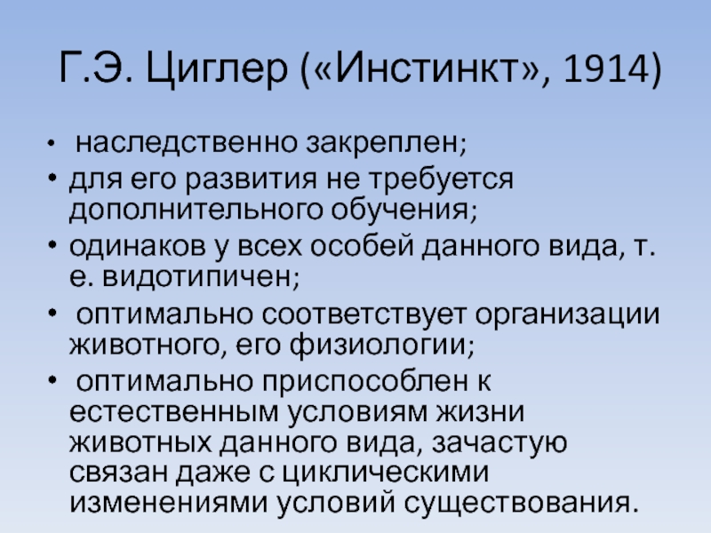 Слайд 6 Г.Э. Циглер («Инстинкт», 1914)