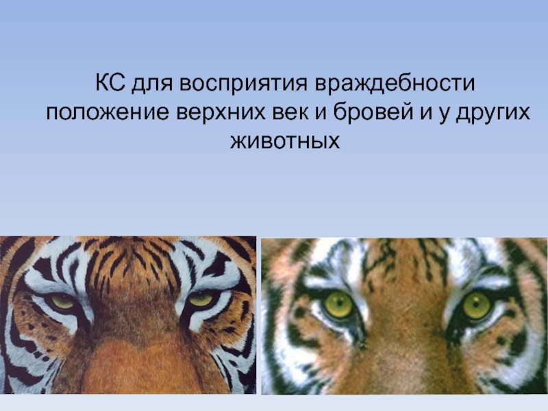 Слайд 45КС для восприятия враждебности положение верхних век и бровей и