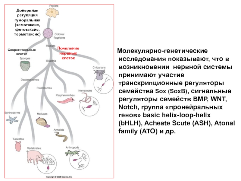Слайд 6 Молекулярно-генетические исследования показывают, что в возникновении нервной системы
