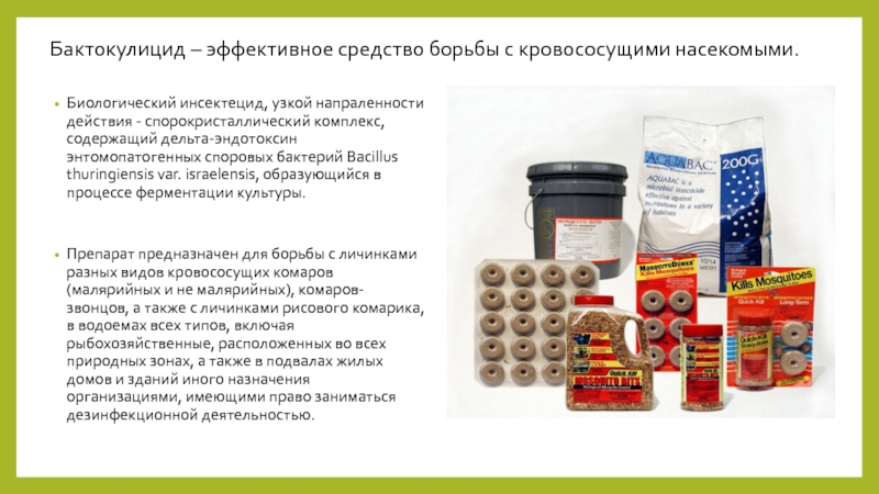 Слайд 37Бактокулицид – эффективное средство борьбы с кровососущими насекомыми.
