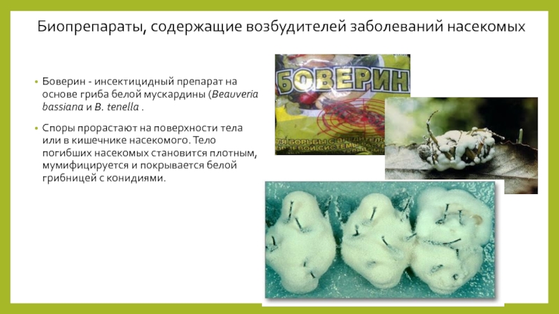 Слайд 40Биопрепараты, содержащие возбудителей заболеваний насекомых