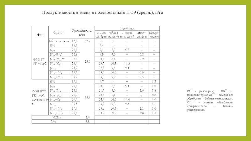 Слайд 16Эффективность применения микроорганизмов на фоне минеральных удобрений