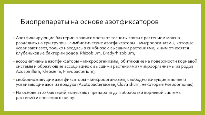 Слайд 13Биопрепараты на основе азотфиксаторов